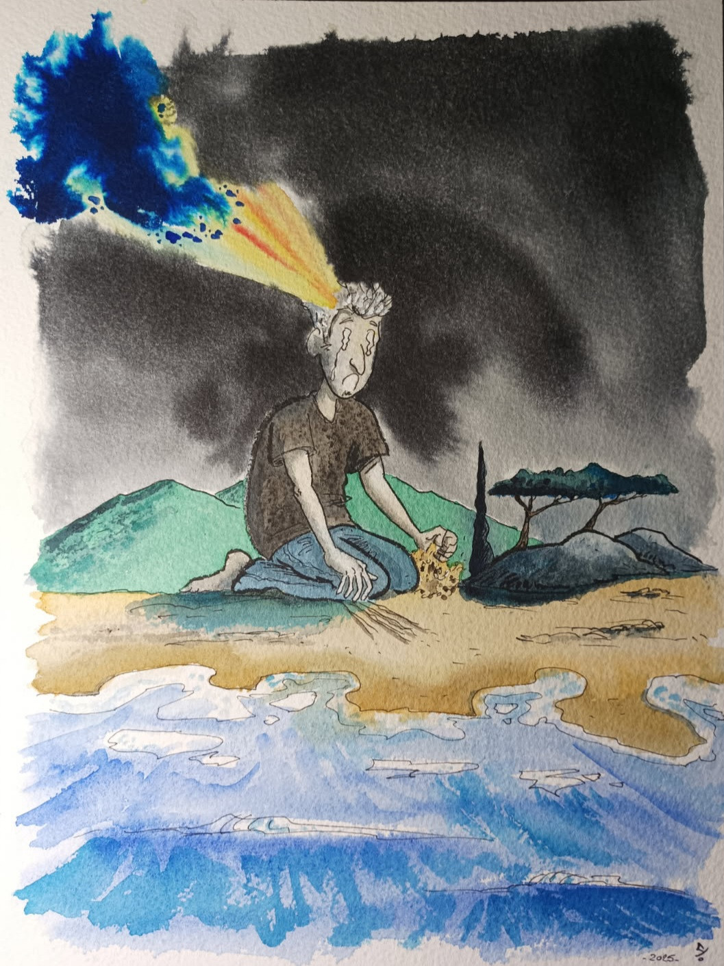 Ses aquarelles étaient de véritables bouteilles à la mer. Mais ses larmes étaient trop douces, l'eau de mer trop salée et le verre trop poli pour accepter toute cette violence intérieure.