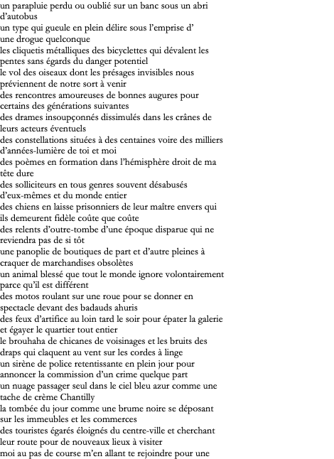 - La transformation du banal en mythique : Une rue devient un espace de convergence entre le quotidien (« brouhaha de chicanes »), l’intime (« mon visage exténué »), et l’universel (« constellations situées à des milliers d’années-lumière »).