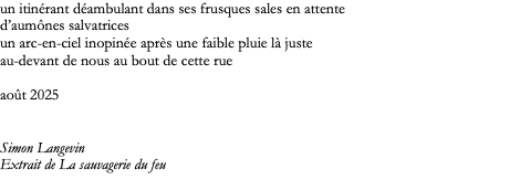 - La fin (« un arc-en-ciel inopiné ») est particulièrement émouvante et symbolique, comme une promesse de beauté dans le chaos. → Note : 0.5/0.5