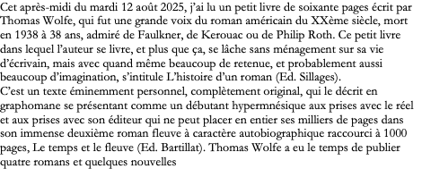 WOLFE Thomas - L'histoire d'un roman - Ed. Sillages - PL