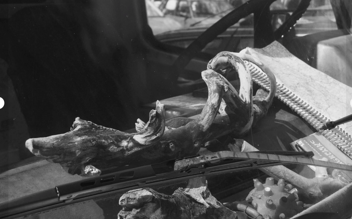 Plage-avant raconte des histoires. Collecte ballotée d’un esprit qui s’amuse a entasser. Entasser? C’est du vol. À travers la limaille des trous, sous la tôle des plastiques, vous trouverez une espèce de ressac, un serpent à peine déplié, une balle pour jouer, un carnet à spirale de cartes routières. Faites une boutade alors : une boucle en bois flotté ne contient qu’un bateau. Tous en paix, tous devant, sous réserve, somme toute, d’être une arche de Noé. Sur la proue, algues et coquillages s’absentent. Quelle audace dans cette plénipotentiaire récolte du conducteur ! Quelle aubaine de la part des objets juste à peine détournés de leur point d’extinction ! Éborgné l’extérieur qui traverse les marées, la voiture égarée, le sujet conducteur s’empare de gris-gris et arbore des conjonctures. Qui emploierait une argutie sans afficher un combat, sans penser à s’amender, sans manquer d’assurance ou même d’arguments ?