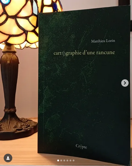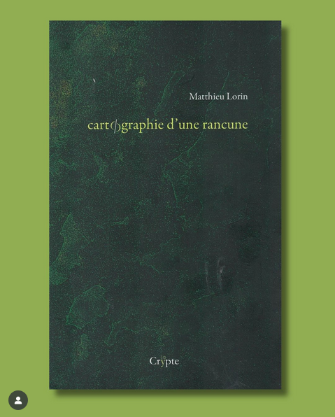 2/ Je vous annonce aussi la sortie de mon dernier recueil, Cartographie d'une rancune, aux éditions de "La Crypte" - une maison que j'estime tout particulièrement.