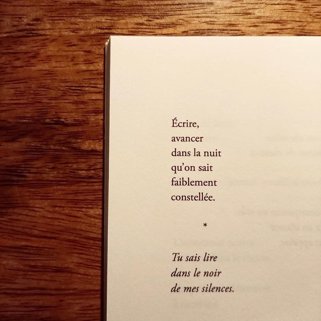 Avec une poésie sèche et tranchante comme un rocher des garrigues, Des feux qui prétendent éclairer la nuit nous proposent un voyage de l’ombre vers plus de lumière, de la difficulté d’Etre vers l’amour de l’Autre.