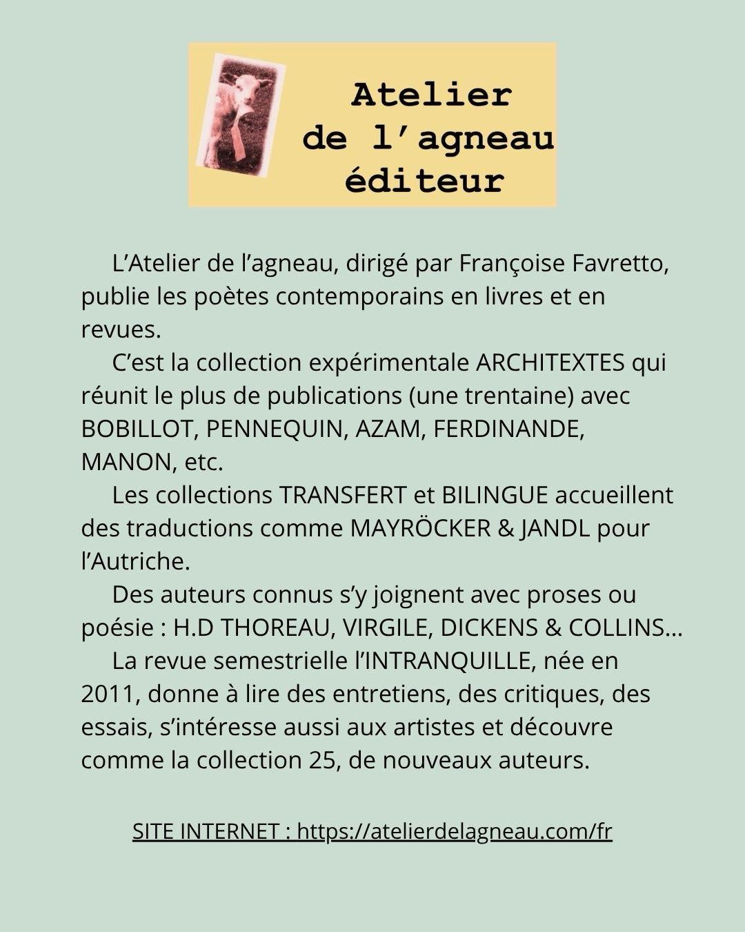 Des Feux qui prétendent éclairer la nuit est publié aux éditions Pétra, Paris, juin 2025 son troisième roman Fin(s) est publié aux éditions Métropolis, Genève avril 2025.