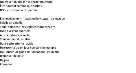 Né en 1988, en Seine Saint Denis, j'y ai grandi puis enseigné les lettres classiques pendant onze ans, collège puis lycée. J'aime l'escalade, et l'Antiquité, la Grèce en particulier. J'ai consacré ma thèse à sa langue érotique. Cela se lit probablement dans ce que j'écris : lyrisme et quotidien diffracté - je chemine -, tenter de recueillir ce qui s'effondre en nous et soutenir, quête âpre et tenace, forcenée, de la joie, dans les doutes et les replis du jour, routes de désirs, d'amour, sans cesse, bien que hantés d'ombres.