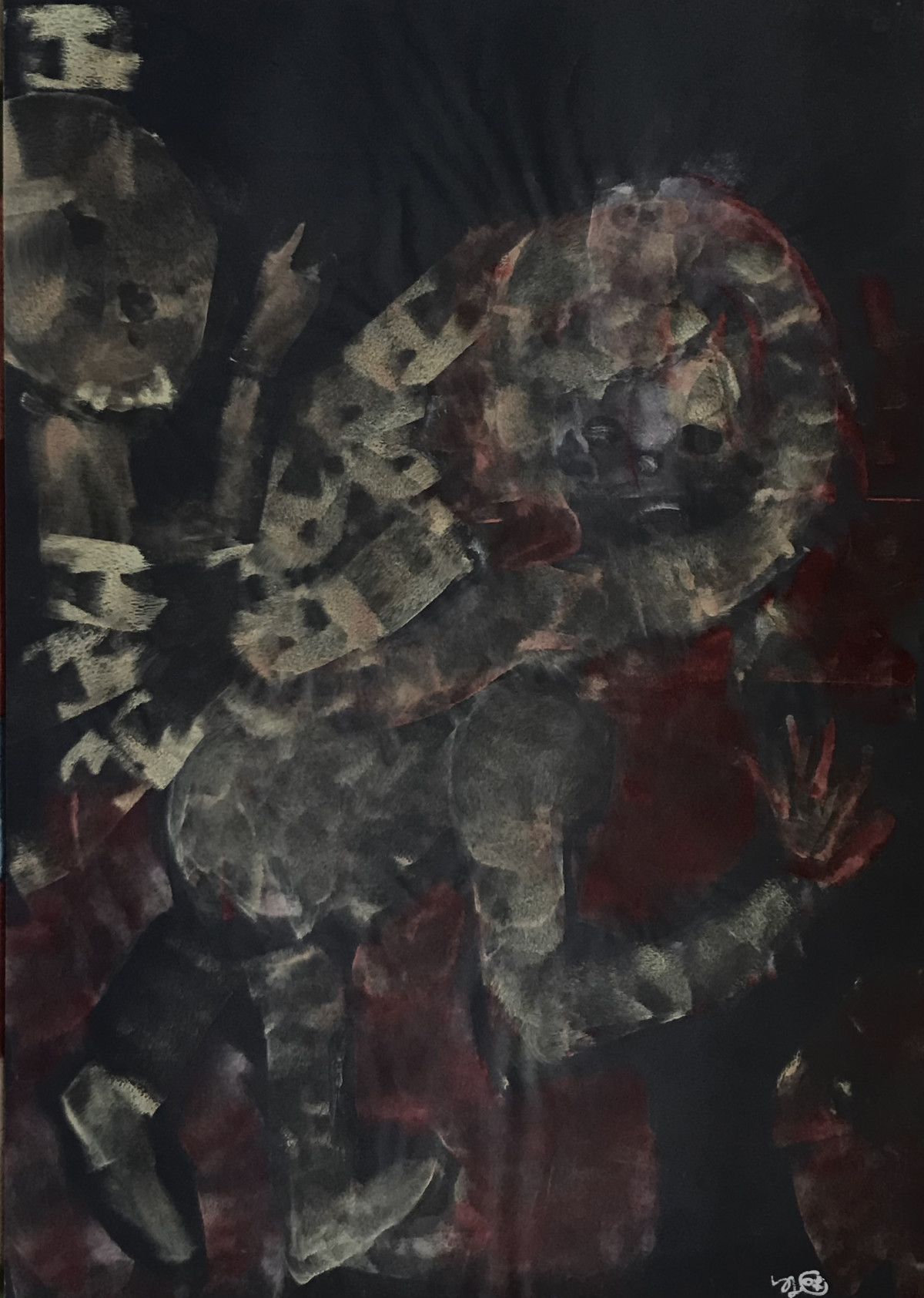 Quel étrange animal, qui es-tu ? 61x45 (gouache sur feuille carbone)