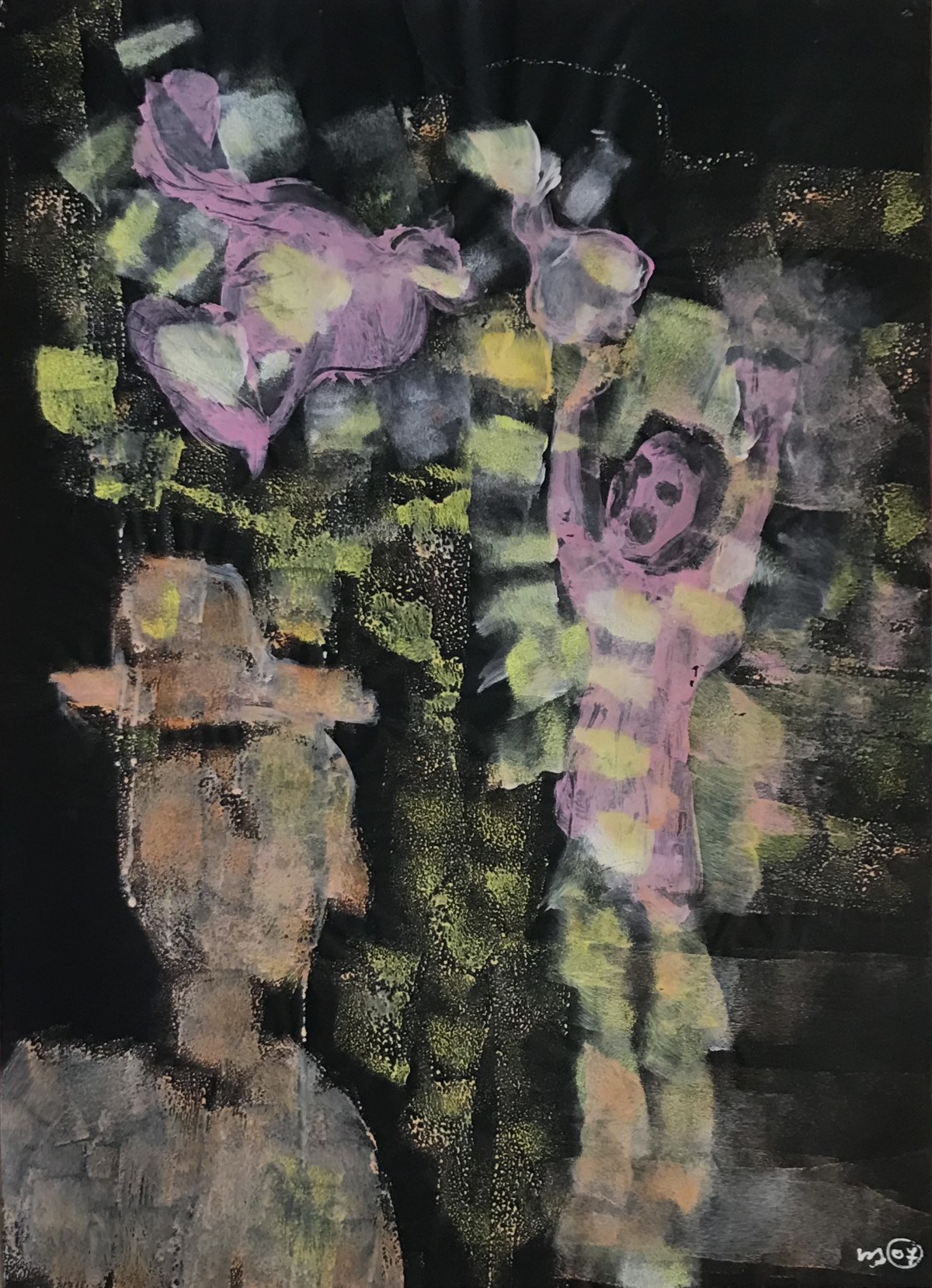 Voyageur voyeur retour à l’improviste de l’au-delà - 61x45 (gouache sur feuille carbone)