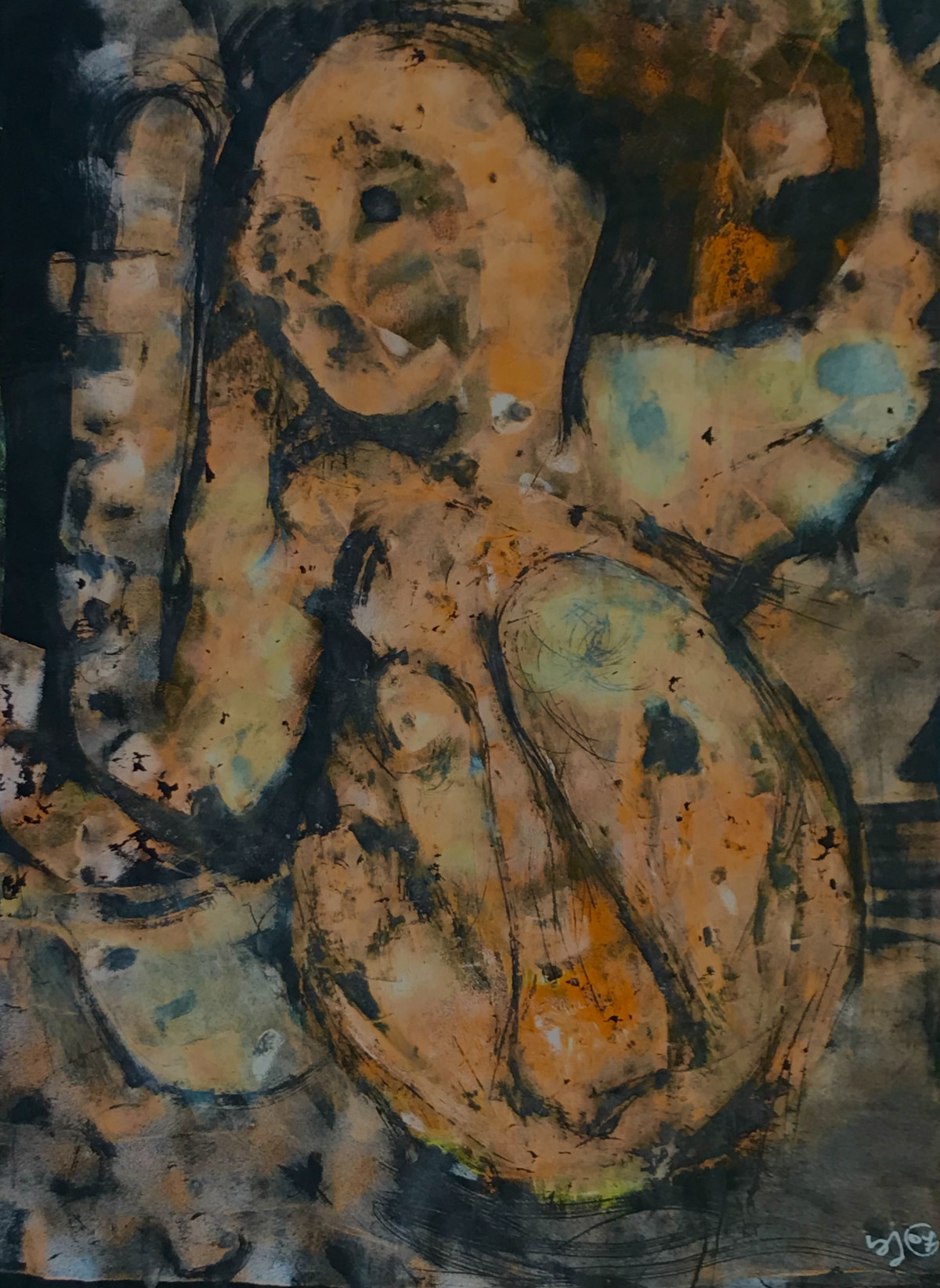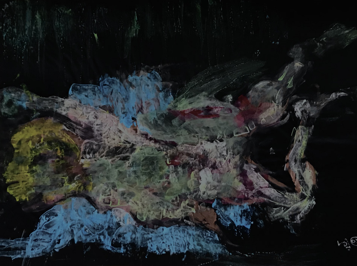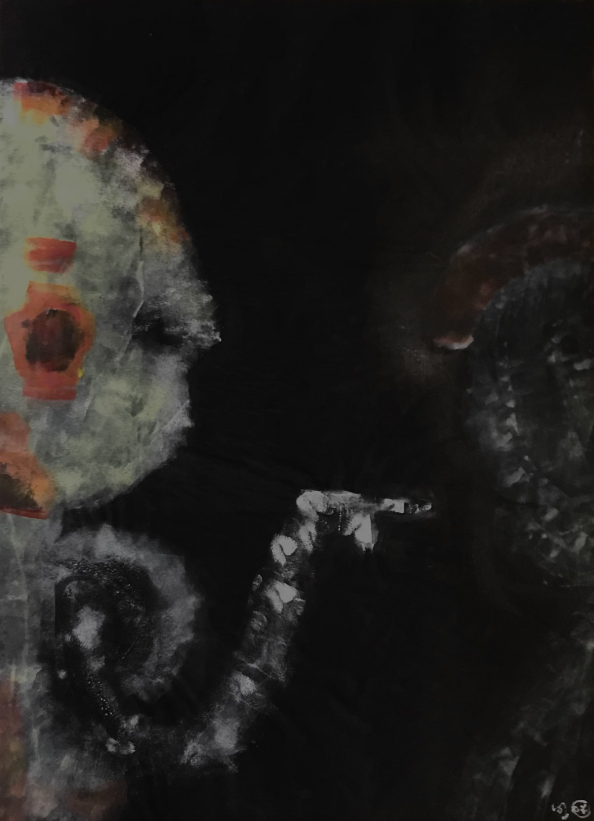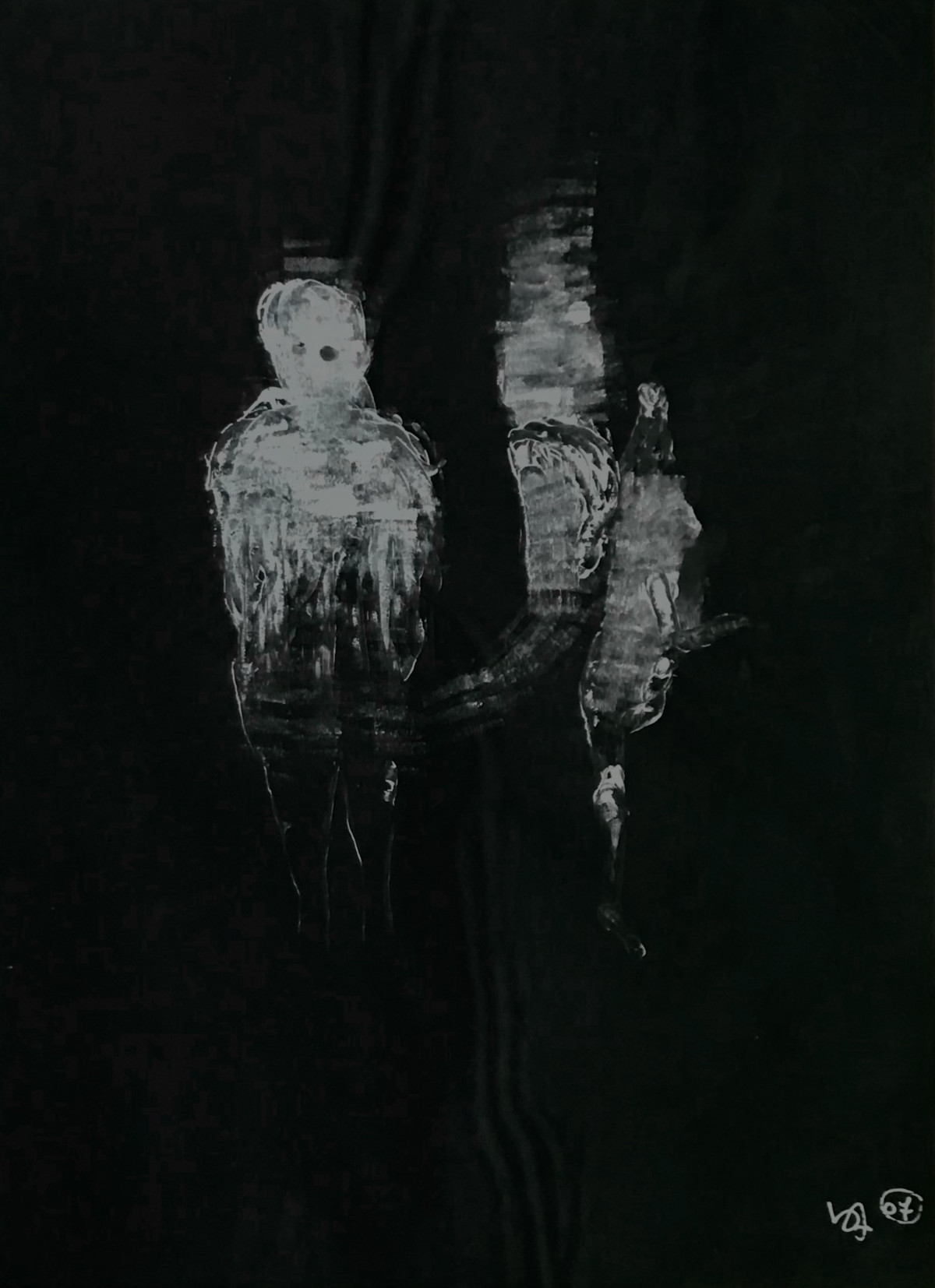 Position foetale pour appréhender les ténèbres - 61x45 (gouache sur feuille carbone)