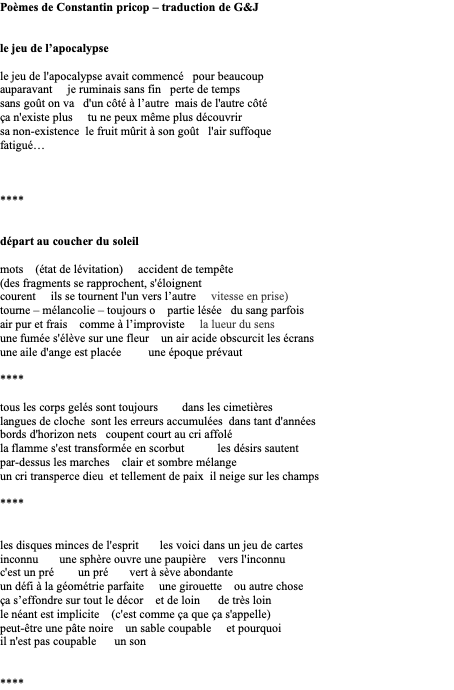 Poésie en cours - traductions G&J