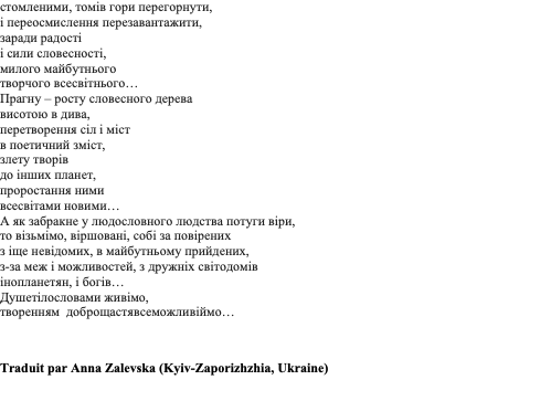 Traduit par Anna Zalevska (Kyiv-Zaporizhzhia, Ukraine)