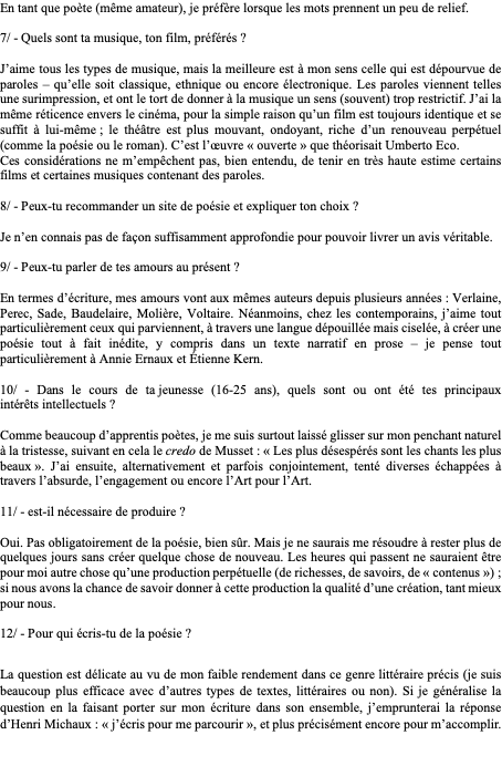 J’ai également créé un site Internet le 1er septembre 2024, consacré à ma passion, intitulé « la Littérature au Forceps » : https://www.lalitteratureauforceps.com Outre mes textes littéraires (publiés ou non), on y trouve également des chroniques, de la critique littéraire, des synthèses didactiques et pédagogiques, des propositions de services, un blog, etc.