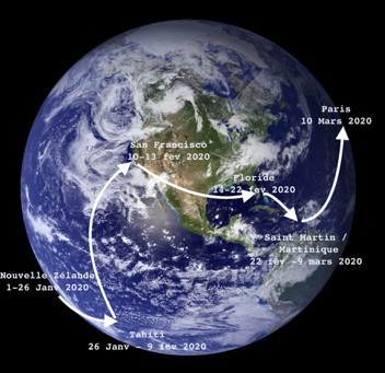 Fin 2019, je suis parti trois mois pour un voyage autour d'un monde non encore contaminé par le corona virus. Chaque soir, j 'écrivais un haïku machouillé mentalement toute la journée pendant mes déplacements.