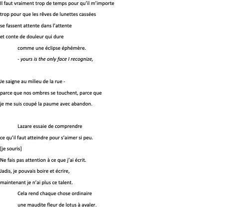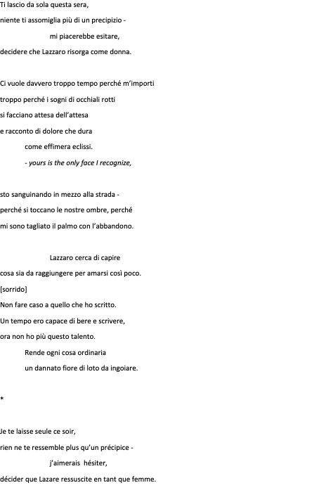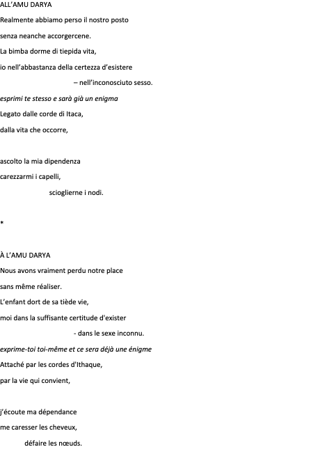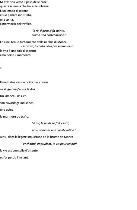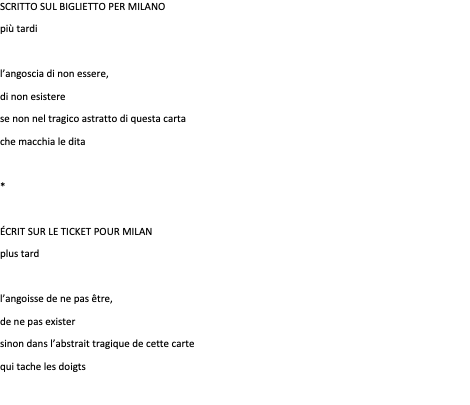 Stefano Bottero est né à Rome en 1994. Il vit à Venise où il a obtenu son doctorat en lettres. Il a publié Poesie di ieri (Oèdipus, 2019, avec préface de Biancamaria Frabotta) et Notturno formale (Industria & Letteratura, 2023). Une sélection de ses poèmes ont été publiés dans la revue “Poesia” (sous la direction de Milo De Angelis). Il est traducteur et critique pour les revues “Nuovi Argomenti” et “Lingua Italiana” de Treccani.