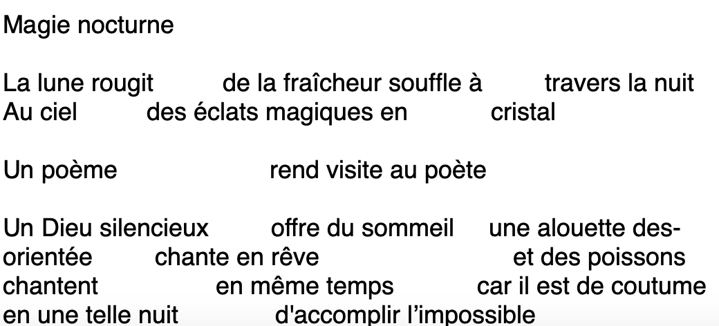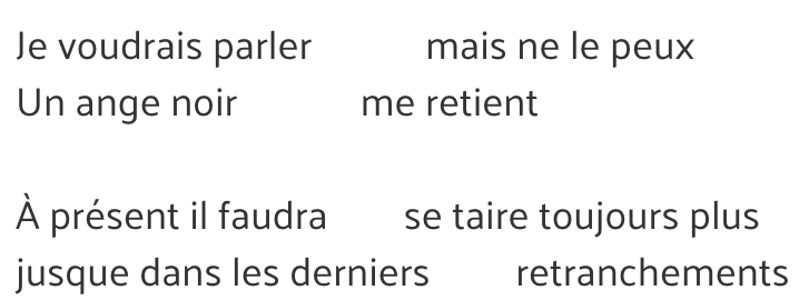 Les traductions françaises sont de Sabine Aussenac. Ensuite deux poèmes extrait du recueil "Je compte les étoiles de mes mots " - Édtions Héros-Limite. Traduction de l'allemand par Edmond Verroul. La mise en page des textes est effectuée en transprose pour la revue La Page Blanche.
