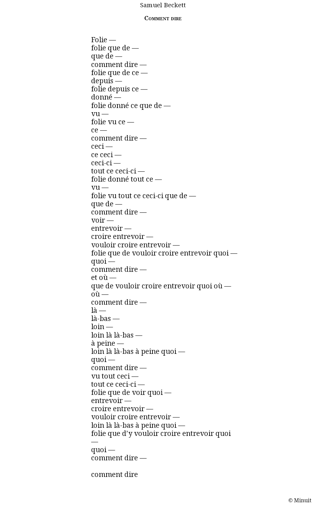 te buvons le matin puis à midi nous te buvons le soir