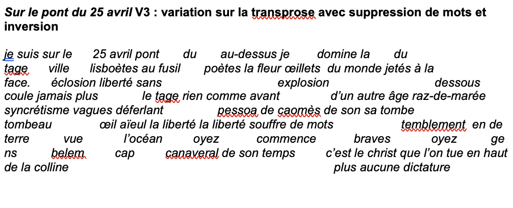 3/ Sur le pont du 25 avril V3 : variation sur la transprose avec suppression de mots et inversion